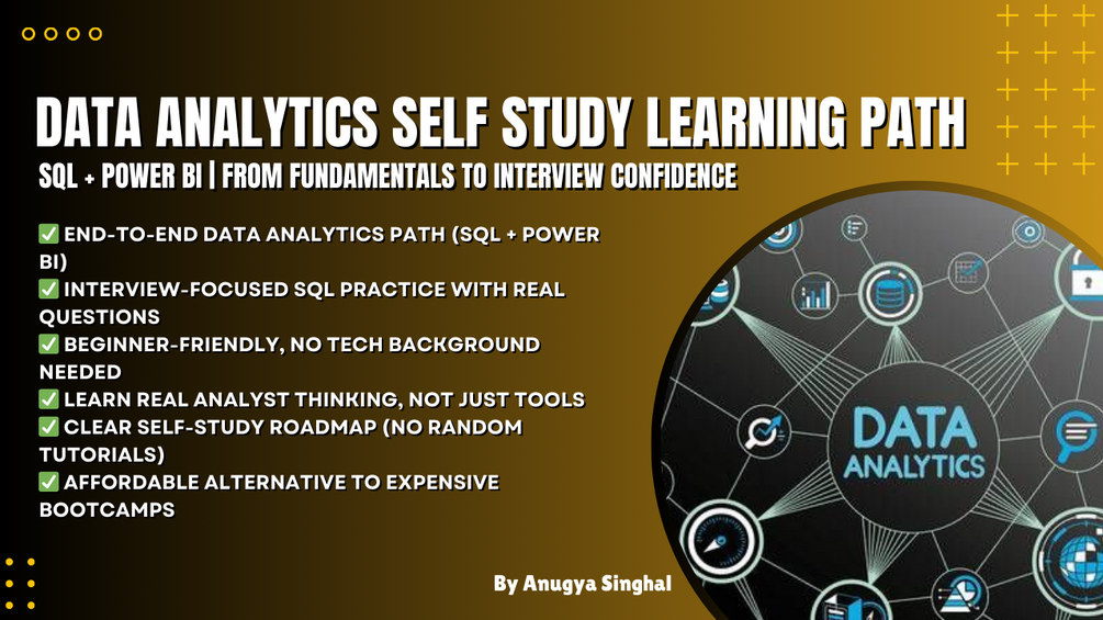 A complete, beginner-friendly data analytics learning path designed for self-study learners who want real skills — not bootcamp hype.