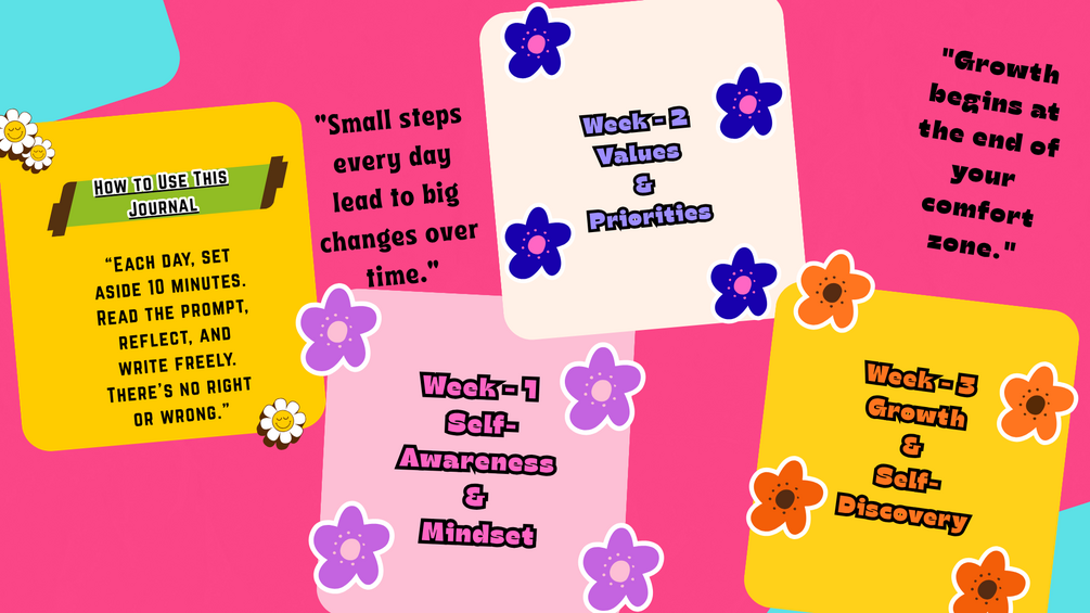 - 30 Unique Daily Prompts – Each day, you’ll receive a thought-provoking question designed to spark reflection, encourage self-discovery, and help you cultivate a growth-oriented mindset.